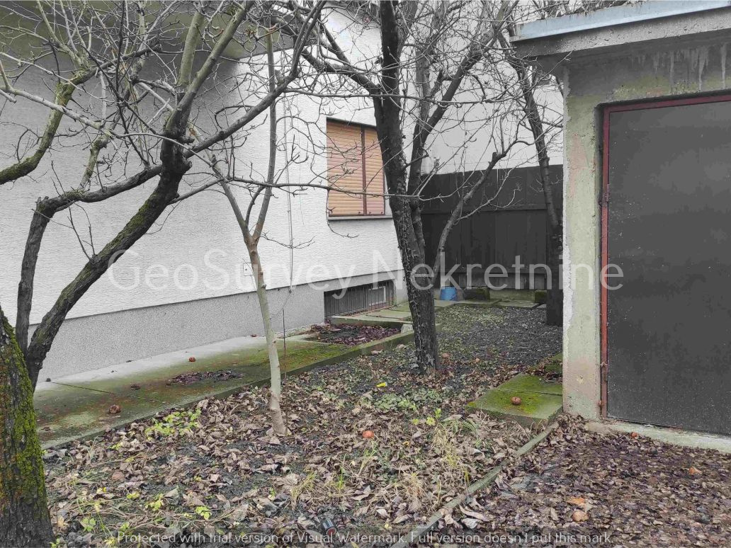 Okućnica površine 165m2 ima dvije zatvorene garaže površine ukupno 37m2